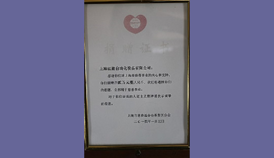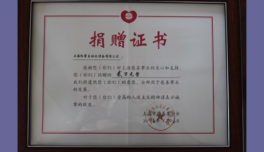 2014年,上海紅箭自動化設(shè)備有限公司為上海市慈善基金會捐款 2014